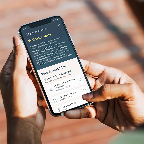 From your very first Previvor Edge visit, you’ll walk away with a clear understanding of your cancer risk and the steps you can take to reduce it.